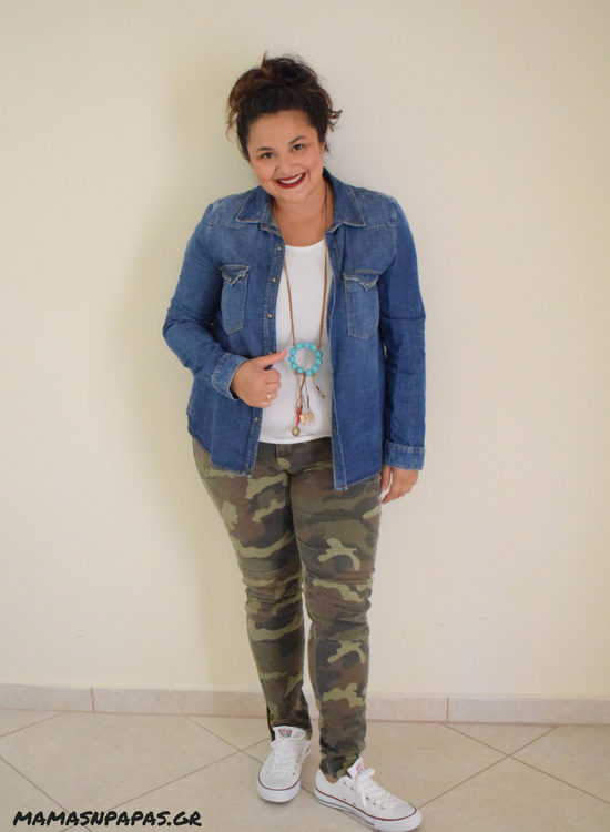 Επιστρέφω με ένα casual πάλι σύνολο επιλέγοντας ένα militairy jean παντελόνι σε συνδυασμό με ένα πουκάμισο blue jean! Και τα δύο στοιχεία είναι πολύ της μόδας, καιρό τώρα! Ένα λευκό t-shirt χωρίς σχέδια είναι ιδανικό παρέα με ένα AllStar Converse λευκό! Για αξεσουάρ αυτή τη φορά επέλεξα ένα μακρύ κολιέ με κάποια boho στοιχεία, και ας μην είναι καθόλου boho το όλο look!