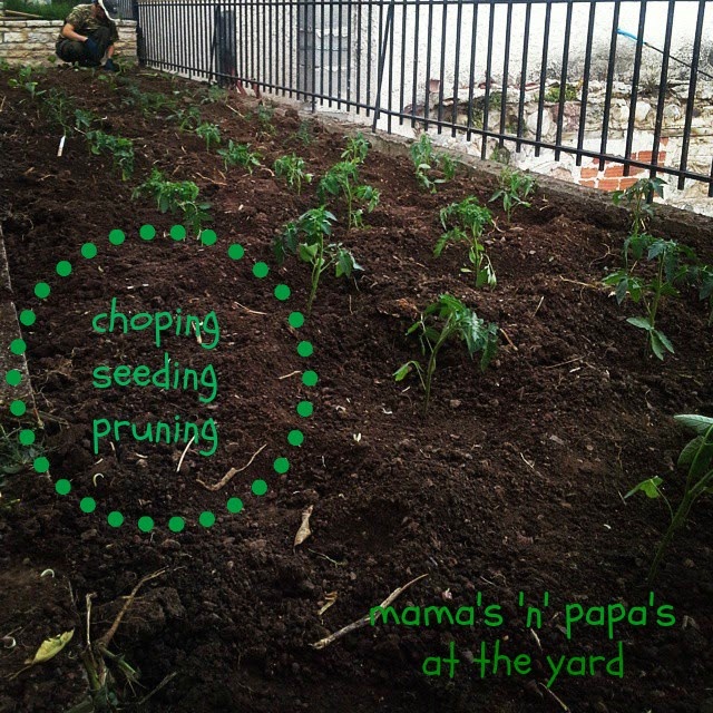 Έπειτα ξεκινήσαμε εργασίες στην αυλή.. Ήρθε το πλήρωμα του χρόνου να φυτέψουμε τα καλούδια μας. Βάλαμε το ροζ λουλουδάτο μας μαντήλι στο κεφάλι, την αντιηλιακή κρέμα μας και βγήκαμε στην αυλή. Ήταν ώρα για κηπευτική.