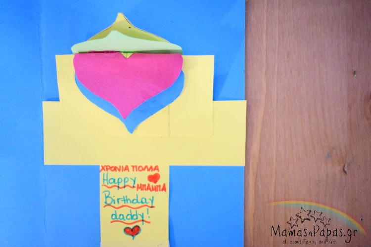 Το σπίτι μας σε λίγες μέρες έχει γιορτή! Ο μπαμπάς μας έχει γενέθλια! Η αλήθεια είναι πως είναι ο πιο αδικημένος στην οικογένεια μιας και συνήθως αυτόν τον μήνα κάθε χρόνο βρίσκομαι στην Θεσσαλονίκη και έτσι δεν έχω τον χρόνο να του ετοιμάσω ένα super party σαν αυτά των παιδιών! Συνήθως φροντίζω μόνο για την τούρτα (η γνωστή τούρτα του μπαμπά🎂), χωρίς στολισμούς και περαιτέρω διακοσμήσεις! Επειδή, όμως, το αξίζει και με το παραπάνω φέτος πρέπει να τον εκπλήξουμε ευχάριστα! Δεν νομίζεις?Για την ώρα επιμελήθηκα παρέα με τα πιτσιρίκια την ευχετήρια κάρτα που θα του δώσουμε μαζί με μια τεράστια αγκαλιά και τρία ζουμερά φιλιά! Μια κάρτα για τον μπαμπά, λοιπόν. Για την ακρίβεια Pop-Up Rainbow Card.