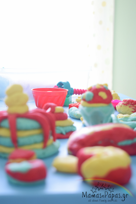 Μπορεί να λερωθήκαμε αρκετά, να κάναμε μια κουζίνα χάλια, ωστόσο άξιζε τον κόπο! Η μικρή μου ενθουσιάστηκε πολύ και η έκπληξη που περίμενε τον Ντίνο όταν επέστρεψε από το σχολείο τον έκανε να χαρεί πολύ! Περάσαμε όλο το μεσημέρι μας παίζοντας ασταμάτητα! Προσπάθησα να τους βγάλω πολλές φωτογραφίες και έχω σκοπό να τις εμφανίσω τις συγκεκριμένες γιατί θέλω να ετοιμάσω ένα PhotoCollage στον διάδρομο έξω από τα δωμάτιά τους! Θα τους αρέσει πολύ!