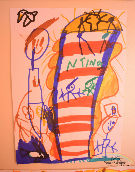 Την τελευταία μέρα στο Νηπιαγωγείο, ως είθισται, η δασκάλα μας παρέδωσε έναν τεράστιο φάκελο γεμάτο με τις εργασίες των παιδιών μας που επιμελήθηκαν με μεράκι κατά την διάρκεια της φετινής χρονιάς! Κάποιες ζωγραφιές του Ντίνου τις ήξερα, μιας και κοσμούσαν τους φρεσκοβαμμένους τοίχους του σχολείου του! Η δασκάλα του είναι η μεγαλύτερη φαν του, σύμφωνα με τα όσα δηλώνει! Τώρα αυτές οι ζωγραφιές ήρθε η στιγμή να στολίσουν το δικό μας σπίτι και πιο συγκεκριμένα το δωμάτιο του μικρού ζωγράφου! Η πρώτη έκθεση ζωγραφικής του Ντίνου, λοιπόν και θέλω πολύ αυτή η ανάρτηση να υπάρχει στο χρονοντούλαπο της ζωής μας! Σπουδαία νέα τα σημερινά!