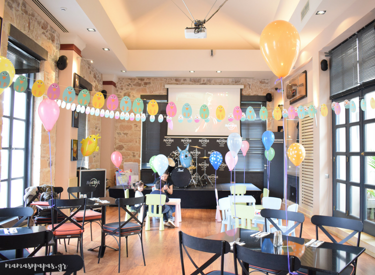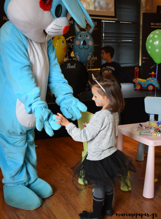 Χτες, περάσαμε την Κυριακή μας στο Hard Rock Cafe στην Ανδριανού στο Μοναστηράκι. Αυτή τη φορά μαζί με τα παιδιά, μεσημβρινές ώρες και όχι βραδινές, όπως συνηθίζαμε. Ήταν ένα κάλεσμα που δεν μπορούσαμε να αγνοήσουμε και ας ήταν όλοι οι δρόμοι προς αυτό κλειστοί, λόγω παρέλασης για την εθνική μας εορτή! Παρέα με τον κούνελο του Hard Rock ανοίξαμε τον δρόμο για τις πασχαλινές κατασκευές. Παίξαμε. Ζωγραφίσαμε. Στολίσαμε αυγουλάκια με διάφορα μπιχλιμπίδια. Χτυπήσαμε και τα drams του hard rock cafe και απολαύσαμε face painitng.