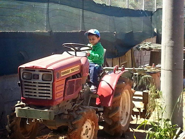 Το Σάββατο που μας πέρασε ο Ντίνος έζησε μία απίστευτη εμπειρία σύμφωνα με τα λεγόμενα του μπαμπά μας αλλά και τα δικά του! Όπως ξέρετε είναι η ημέρα των αγοριών που την περνούν σχεδόν όλη μόνοι τους! Αυτή τη φορά ο μπαμπάς επέλεξε να τον πάει σε ένα κτήμα- αγρόκτημα που έχει ένας φίλος μας! Καλλιεργεί λαχανικά και εκτρέφει ζώα! Είναι στο ξεκίνημα, αλλά ήδη το έργο του είναι εμφανές και όμορφο! Κάπου, λοιπόν, μετά την Ανάβυσσο πέρασαν τις πρωινές τους ώρες! Το πώς γύρισε σπίτι δεν θέλετε να ξέρετε! Μέχρι και στα αυτιά του μέσα είχε χώματα..Μια μέρα στη φάρμα λοιπόν!