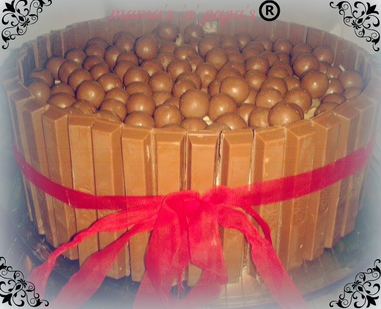 Αρχίζω να στολίζω περιμετρικά με kit kat και μόλις τελειώσω ρίχνω τα maltesers από πάνω…