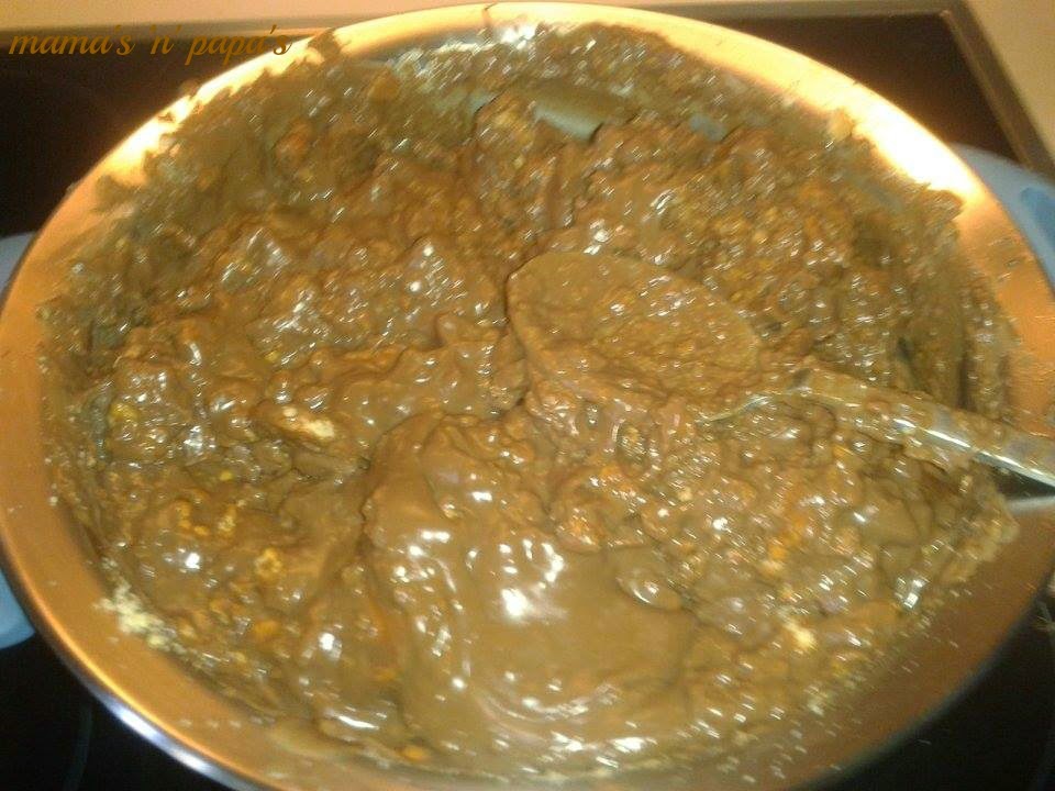 Μόλις δω ότι αρχίζει να πήζει ρίχνω το κομματιασμένο βιτάμ μου και τις κουβερτούρες σιγά σιγά..