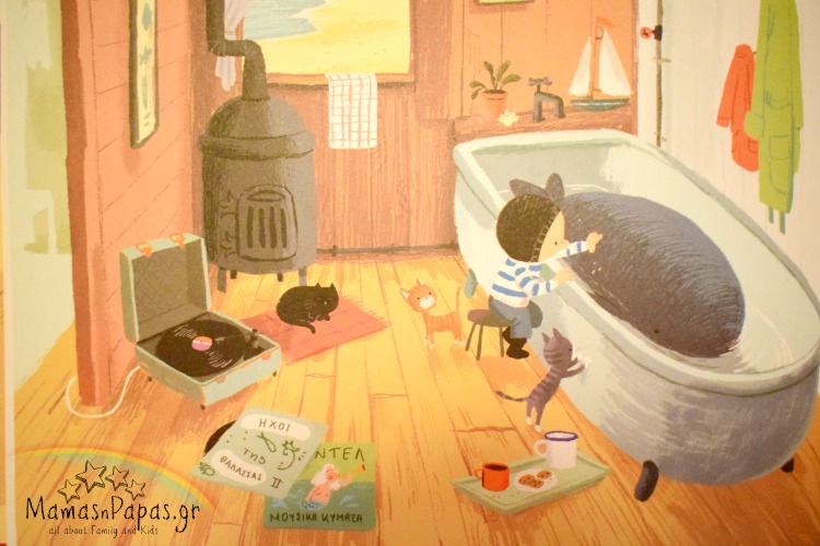 Του έκανε παρέα βάζοντάς του να ακούει τους ήχους της θάλασσας και λέγοντάς του ιστορίες για το νησί!Πλησίαζε η ώρα που θα επέστρεφε ο μπαμπάς του, όμως! Τι θα κάνει άραγε το μικρό αγόρι? Ο μπαμπάς του πως θα αντιδράσει? Θα πρέπει να επιστρέψει η μικρή φάλαινα εκεί που ανήκει ή όχι?