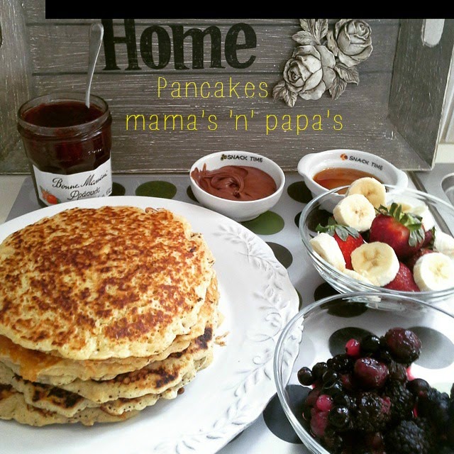 Κάθε φορά που επιστρέφουμε από βόλτα με πολύ παιχνίδι τα παιδιά πεθαίνουν της πείνας. Συνήθως κάνω κάτι εύκολο και είτε αλμυρό είτε γλυκό! Τα pancakes είναι μια αγαπημένη επιλογή. Στη φωτογραφία βλέπεις με τι τα συνοδεύουμε συνήθως!