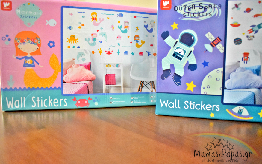 Για το δωμάτιο του Ντίνου επέλεξα πλανήτες και αστροναύτες! Μα τι άλλο! Για την μικρή μου Stacy επέλεξα γοργόνες και ζωάκια του βυθού! Τα θέματα τους ταίριαζαν γάντι και ξέρω πως τα αγαπούν πολύ και οι ίδιοι! Αυτό το πλατύ χαμόγελο στο πρόσωπό τους όταν τα αντίκρισαν δεν συγκρίνεται με τίποτα!