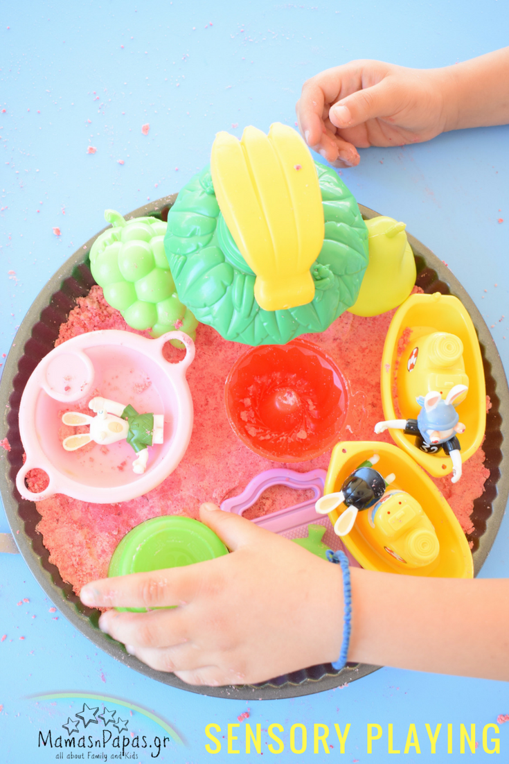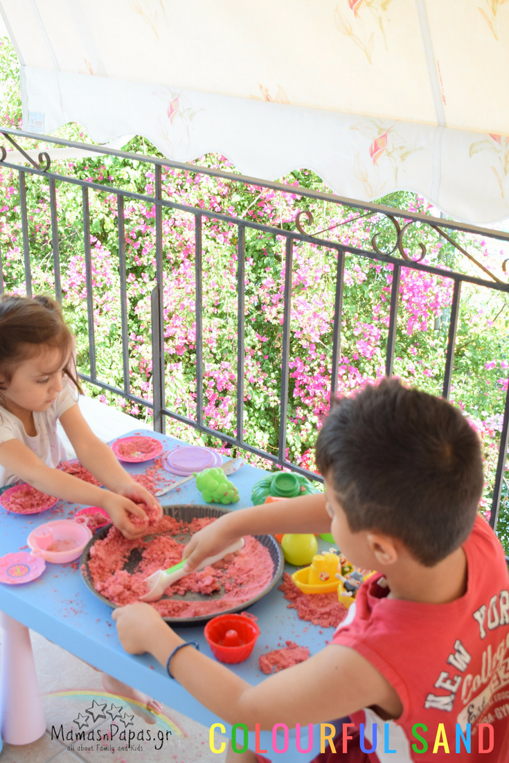 Εδώ και πολύ καιρό προσπαθώ να ολοκληρώσω τις αναρτήσεις με διάφορα sensory παιχνίδια που παίζουμε με τα παιδιά μέσα στο σπίτι! Είναι μία υπέροχη δραστηριότητα και τα παιδιά άνω του ενός έτους τρελαίνονται για αυτό το είδος παιχνιδιού! Εγώ το αποκαλώ και messy play ταυτόχρονα, γιατί ύστερα από αυτό το παιδί είναι αμέσως για μπάνιο! Σήμερα θα σας δείξω την σπιτική μας χρωματιστή άμμο που την φτιάχνω εδώ και 3 χρόνια και το παιχνίδι με αυτήν σταματάει ύστερα από ώρες! Πώς να φτιάξεις χρωματιστή άμμο για αισθητηριακό παιχνίδι στη στήλη μου με θέματα για το Παιδί!
