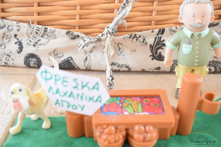 Δεν χρειαστήκαμε πολλά! Ευτυχώς είχα φυλαγμένα στο κάδο ανακύκλωσης με πλαστικά στο σπίτι μας 2 μπουκάλια από γάλατα που είχαν αδειάσει τις προηγούμενες ημέρες! Το ένα το έβαψε ο Ντίνος με δαχτυλομπογιές στα χρώματα του μπλε! Ετοιμάσαμε ταμπελάκια με γωνιές της φάρμας μας και το αποτέλεσμα μετά από λίγο ήταν αυτό!
