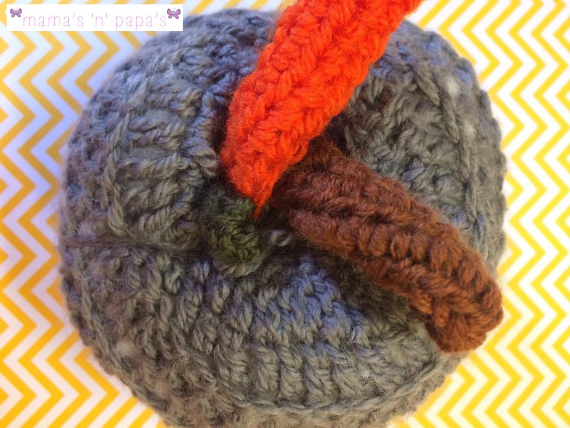 Για να κλείσεις την κολοκύθα σου πρέπει απλά να ενώσεις τις άκρες του έργου σου! Έπειτα ξεκινάς να κλείνεις πρώτα τον πάτο της κολοκύθας σου! Με μια καρφίτσα με ”κεφάλι” πίσω, ράβεις ενώνοντας την κάτω επιφάνεια!