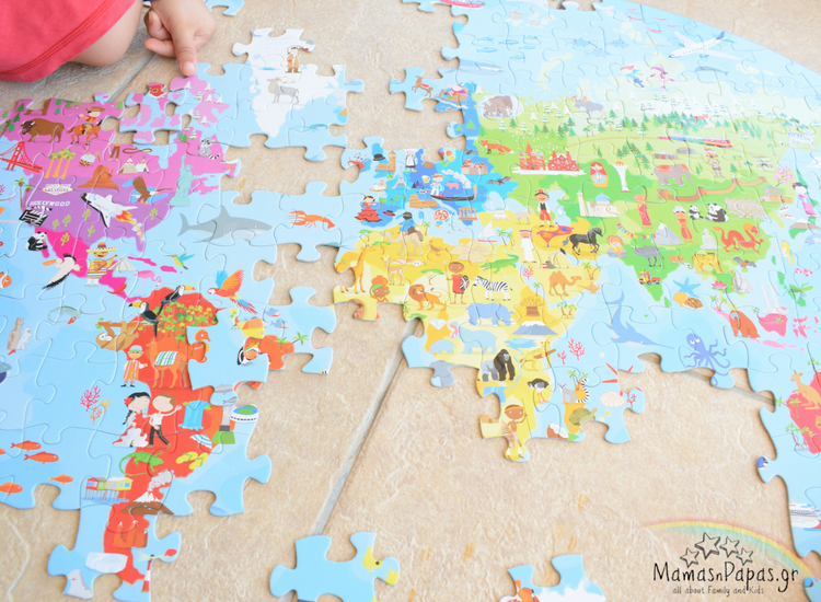 Αντικρίσαμε τον πλανήτη μας από την μία άκρη ως την άλλη! Ένα υπέροχο, χρωματιστό με όμορφη εικονογράφηση οβάλ puzzle μόλις είχε ολοκληρωθεί μπροστά μας! Το ευχαριστηθήκαμε πολύ, διασκεδάσαμε και στο τέλος είπαμε που θα ήθελε να ταξιδέψει πρώτα ο καθένας μας! Και οι 3 είπαμε με μια φωνή!