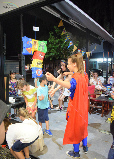 Η Αγγελίνα ντυμένη ως Super Woman διασκέδασε τα παιδιά και τα απασχόλησε καταστρώνοντας σχέδια και παιχνίδια!Το Face Painting δεν έλειψε λίγο πριν το τέλος, όπως και το σπάσιμο της Pinatas από το We Love Pinatas, handmade by Anthomeli!