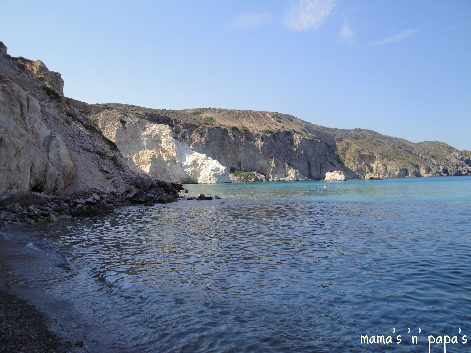 Μπορώ να υπερασπιστώ με πάθος και απόλυτη σιγουριά, ότι αυτή η παραλία δεν έχει να ζηλέψει σε τίποτα από οποιαδήποτε άλλη πολύ -φημισμένη και ίσως υπερεκτιμημένη. Τα νερά της πλούσια και δροσερά σε έκαναν να θέλεις να κολυμπάς στα πολύ βαθιά για πολύ ώρα. Τα ηφαιστειακά της βράχια με το λευκό βότσαλο θα μου μείνουν χαραγμένα στη μνήμη μετά από τόσες ώρες εκεί γεμάτες παιχνίδι και περπάτημα στην παραλία.