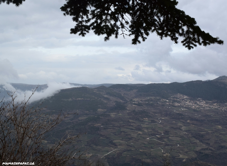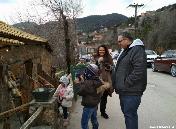 Επιπρόσθετα, να σου πω ότι το τοπίο ήταν αρκετά ομιχλώδες και η θερμοκρασία δεν ξεπερνούσε τους 3 βαθμούς! Αυτό βοηθούσε πολύ ώστε να κάνεις μια ωραία χειμωνιάτικη βόλτα σε ορεινό βουνό. Θα μπορούσα να είχα τραβήξει περισσότερες φωτογραφίες, ωστόσο η βροχή μετά από ένα σημείο δεν μου το επέτρεψε! Αμέσως μόλις φάγαμε πήραμε τον δρόμο της επιστροφής αφού δεν μπορούσαμε να περπατήσουμε λίγο ακόμα στα σοκάκια του χωριού! Τα παιδιά ένιωσαν ευχαρίστηση και ας μην πρόλαβαν να διασκεδάσουν στις κούνιες με θέα το χιονισμένο βουνό!