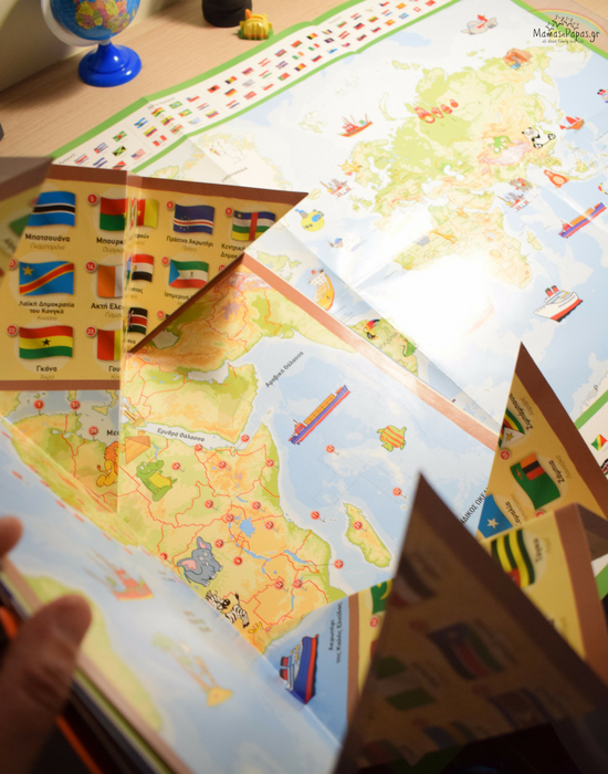 Ο Άτλας που μόλις κυκλοφόρησε από τις Εκδόσεις Διόπτρα είναι η καλύτερη πρόσκληση να μπουν τα παιδιά στον κόσμο της Γεωγραφίας, να ταξιδέψουν σε κάθε γωνιά της Γης με τον ένθετο γιγάντιο παγκόσμιο χάρτη αλλά και με τους αναδιπλούμενους χάρτες της κάθε Ηπείρου! Περιλαμβάνει τις σημαίες όλων των χωρών του κόσμου! Αυτό είναι κάτι που ενθουσίασε το δικό μου παιδί, μιας και έχει μανία με τις σημαίες και συχνά με ρωτάει ποια σημαία έχει η τάδε χώρα! Ομολογώ  πως πολλές φορές δεν ξέρω τι να του απαντήσω, οπότε είναι ευκαιρία να κάνει και η μαμά λίγη εξάσκηση μαζί το παιδί, δεν νομίζεις?