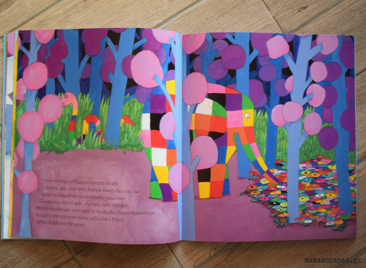 Η μικρή μου κόρη αγαπά πολύ τα ελεφαντάκια! Όποτε βρίσκουμε βιβλίο που μιλά για αυτά δεν χάνουμε ευκαιρία και το παίρνουμε στα χέρια μας! Ιστορίες με τον Έλμερ, το ελεφαντάκι κυκλοφορούν αρκετές άλλωστε! Πρόσφατα πήραμε στα χέρια μας τον περίπατο του Έλμερ και δεν το αφήνουμε από πάνω μας! Η ιστορία του μας δίδαξε πως άλλοι εκτιμούν τις μικρές χαρές και άλλοι δεν χαρίζουν λεπτό για να τις γευτούν! Πόσο άτυχοι είναι οι δεύτεροι!