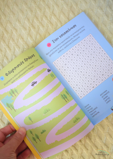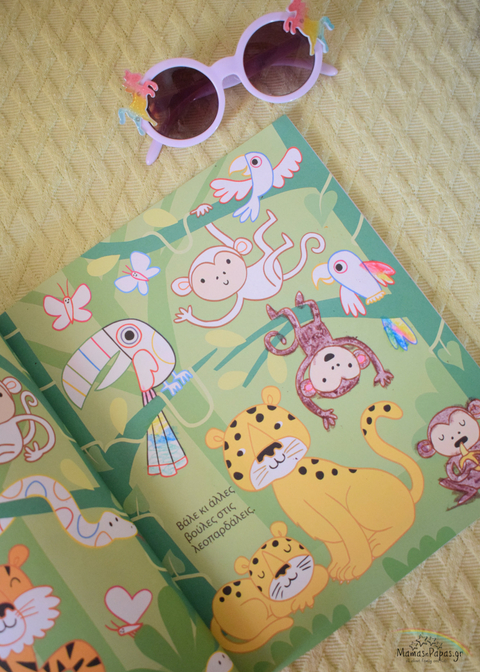 Αυτό το χαρούμενο βιβλιαράκι έχει απίστευτα γλυκιά εικονογράφηση και είναι γεμάτο με δραστηριότητες και παιχνίδια ώστε να περάσει ευχάριστα και δημιουργικά το παιδάκι σου τον ελεύθερο χρόνο του μαζί του ή και μόνο του ορισμένες φορές!Θέματα όπως η ζούγκλα, ταξίδια με το αεροπλάνο, αφίξεις, βόλτες στο λιμάνι, στην παραλία, στα βράχια, στο πάρκο, στο διάστημα και στο ξενοδοχείο είναι θέματα που θα του κεντρίσουν το ενδιαφέρον για πολύ ώρα! Αγάπησα πολύ την γλυκιά γραμματοσειρά του βιβλίου, τα χρώματα αλλά και την επιλογή των θεμάτων!