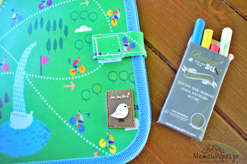 Άλλη μία οικολογική χρήση των Jaq Jaq Bird μιας και δεν ξοδεύουμε καθόλου χαρτί! Το κάθε βιβλίο ή σουπλά διαθέτει μια συσκευασία με 4 κιμωλίες Butterstix φυλαγμένες στη θήκη έτσι ώστε να μην πέφτουν στο πάτωμα αν τυχόν το παιδί το αναποδογυρίσει! Έξυπνο έτσι?