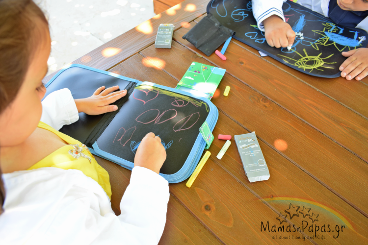 Ζωγραφίζουμε με σουπλά και βιβλία μαυροπίνακα στη βόλτα μας για φαγητό ή χυμό!